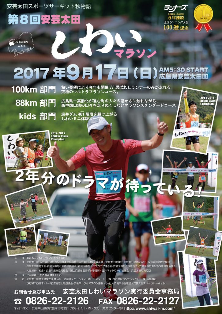 しわいマラソン2017のポスターを制作させていただきました。何万枚もある、前大会の写真から、選手の想いが伝わる写真を選抜し、その中から、ポスター用写真を選択しています。