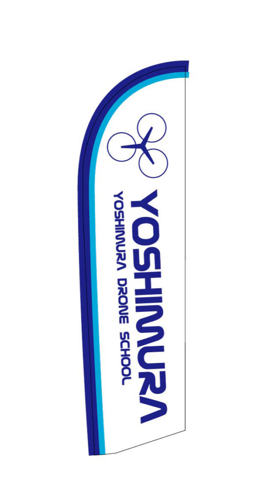 ヨシムラドローンスクール様の、のぼり旗を制作させていただきました。特徴を出す為通常ののぼり旗ではなく、セール型ののぼり旗でデザインさせていただきました。